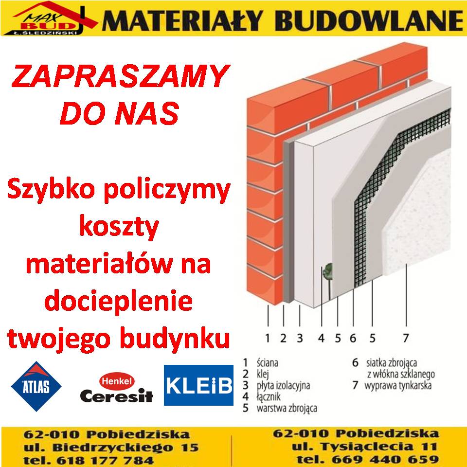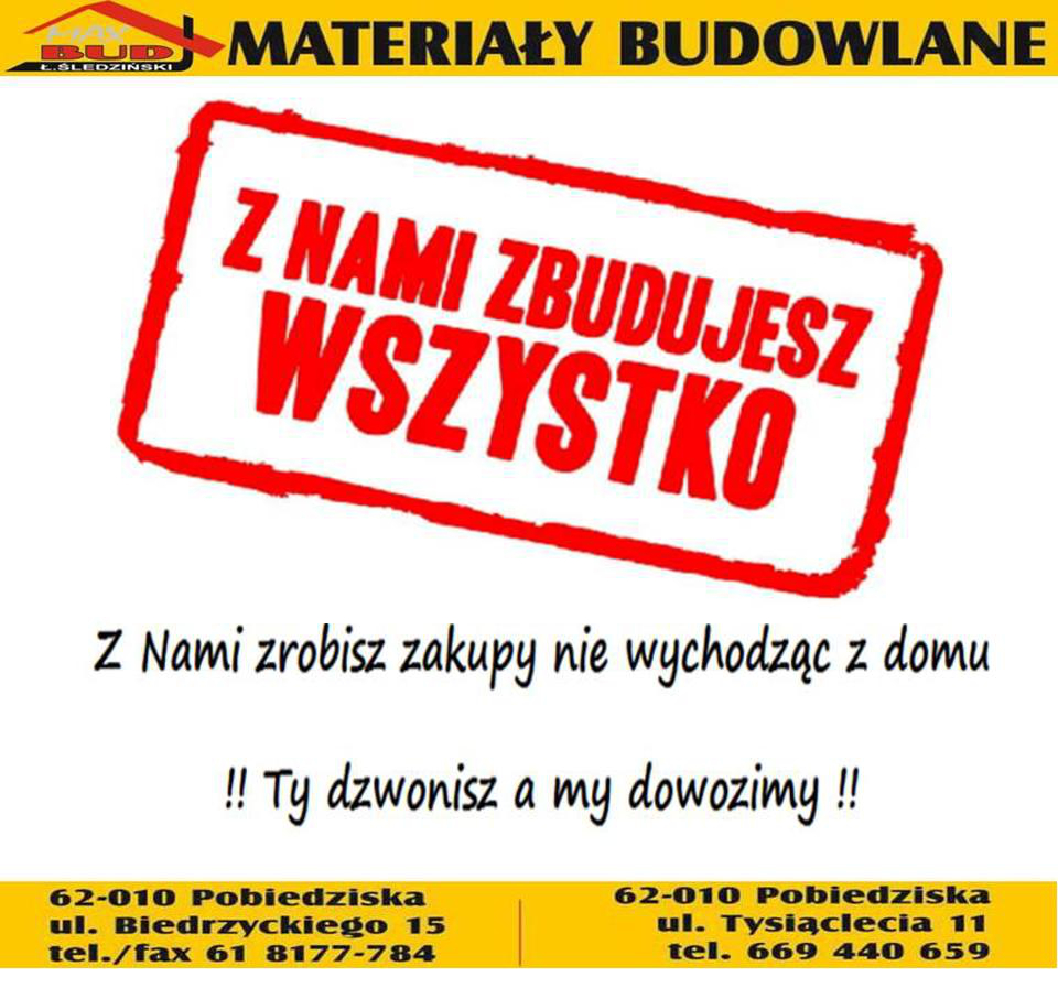 MAX-BUD Śledzińscy jest firmą rodzinną, znajdującą się w miejscowości Pobiedziska, prowadzoną przez Justynę i Łukasza Śledzińskich. Od 1994 roku zajmujemy się sprzedażą takich produktów jak materiały budowlane i wykończeniowe. Posiadamy dwa punkty handlowe na terenie Pobiedzisk – przy ulicy Biedrzyckiego 15 oraz przy ulicy Tysiąclecia 11.